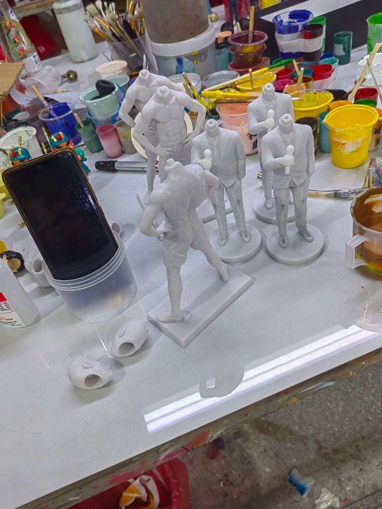 Una vez que ya tenemos la figura impresa, toca el último paso: pintar. Para esto, utilizamos pinturas acrílicas de alta calidad y técnicas de sombreado, degradado y texturizado que realzan cada expresión facial, prenda y accesorio.