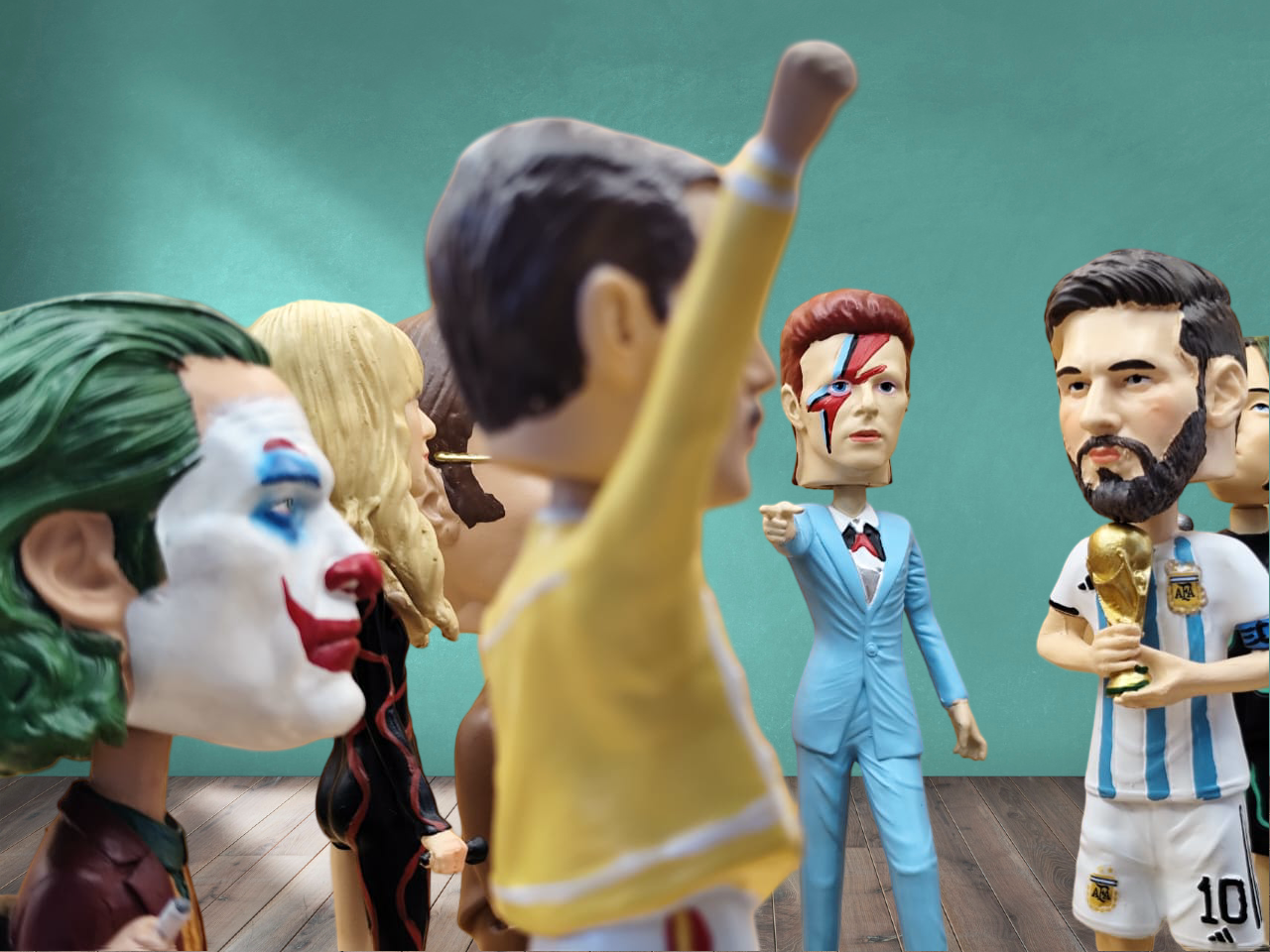 ¿El resultado? Bobbleheads que no sólo capturan el alma de tus ídolos, sino que los convierten en verdaderas piezas de colección. Un monito que cabe en tu escritorio, pero que nunca pasa desapercibido.
