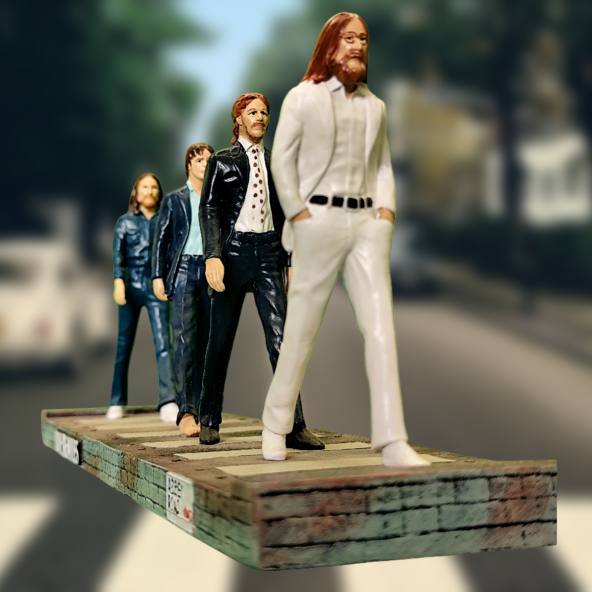Revive uno de los momentos más icónicos de la historia de la música con esta increíble figura de Los Beatles cruzando Abbey Road. 🌟 Fabricada en resina de alta calidad y pintada a mano, recrea con gran detalle la legendaria portada del álbum que marcó una era.