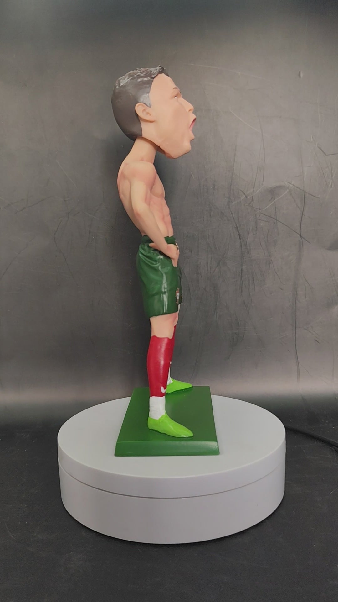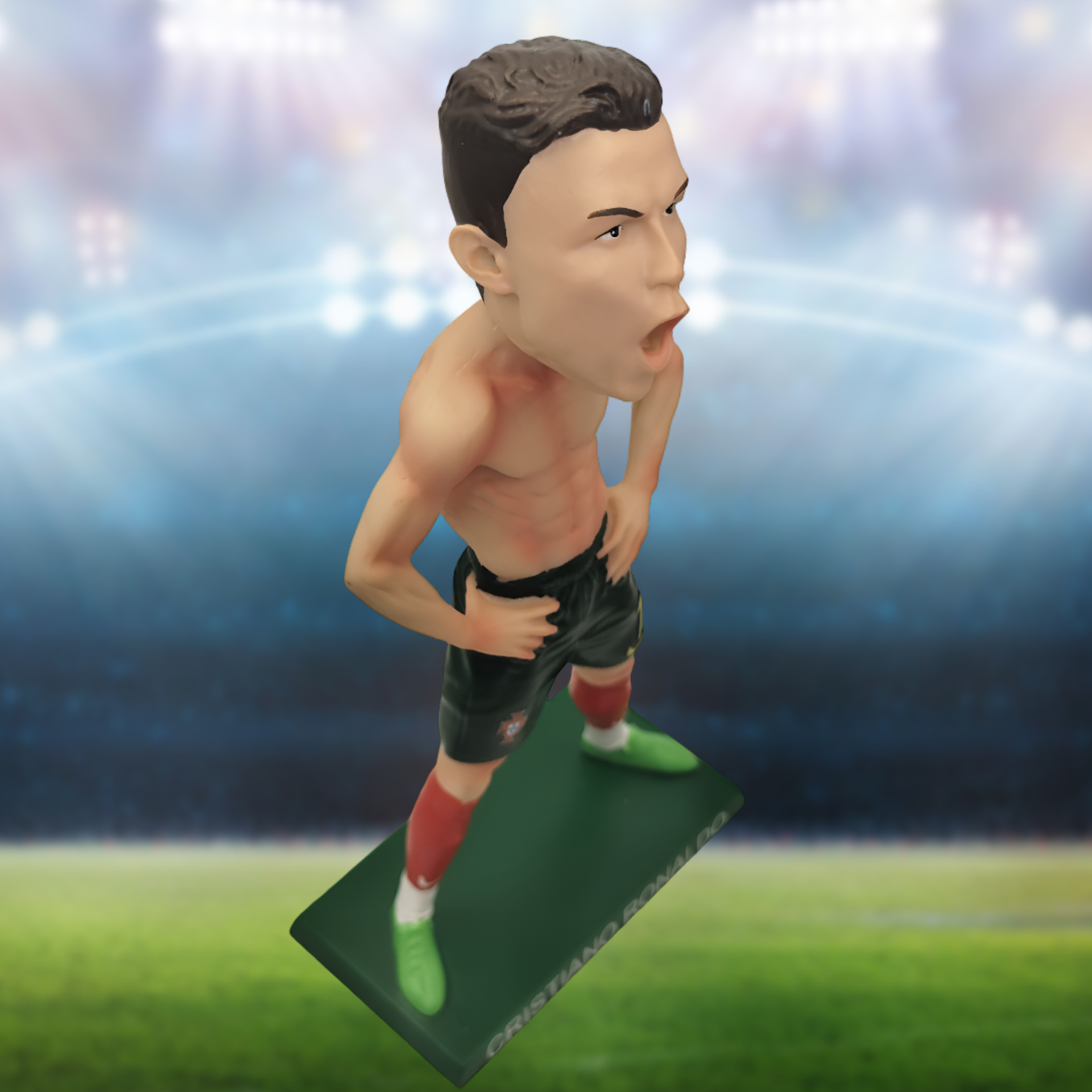 Revive la emoción de cada gol con esta figura bobblehead de Cristiano Ronaldo en plena celebración de gol. Hecha en resina de alta calidad y pintada a mano, captura toda la fuerza, elegancia y determinación del astro portugués.