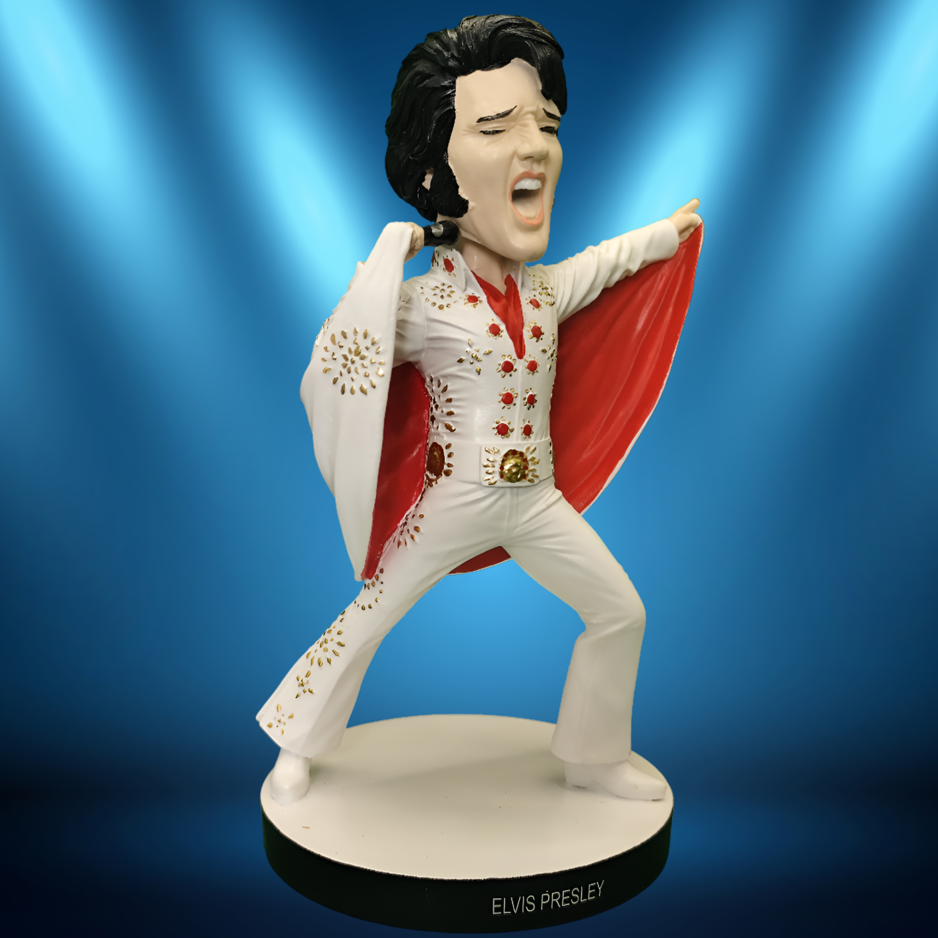 Rinde homenaje al rey del rock con esta increíble figura bobblehead de Elvis Presley. Hecha en resina de alta calidad y pintada a mano, captura su icónica presencia, estilo único y energía inconfundible sobre el escenario. ✨