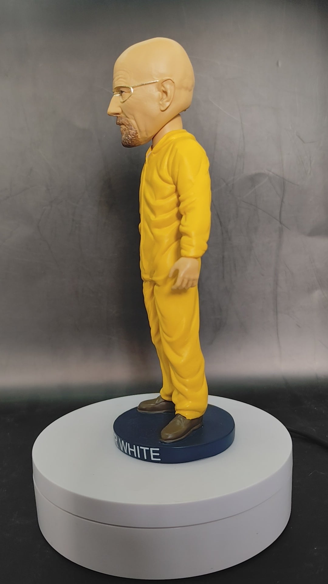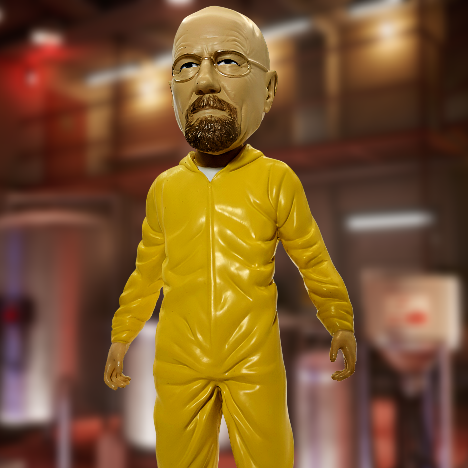 Rinde homenaje al icónico personaje de la televisión con esta figura bobblehead de Walter White, de la serie Breaking Bad. Hecha en resina de alta calidad y pintada a mano, captura su intensidad, mirada calculadora y personalidad única como Heisenberg.